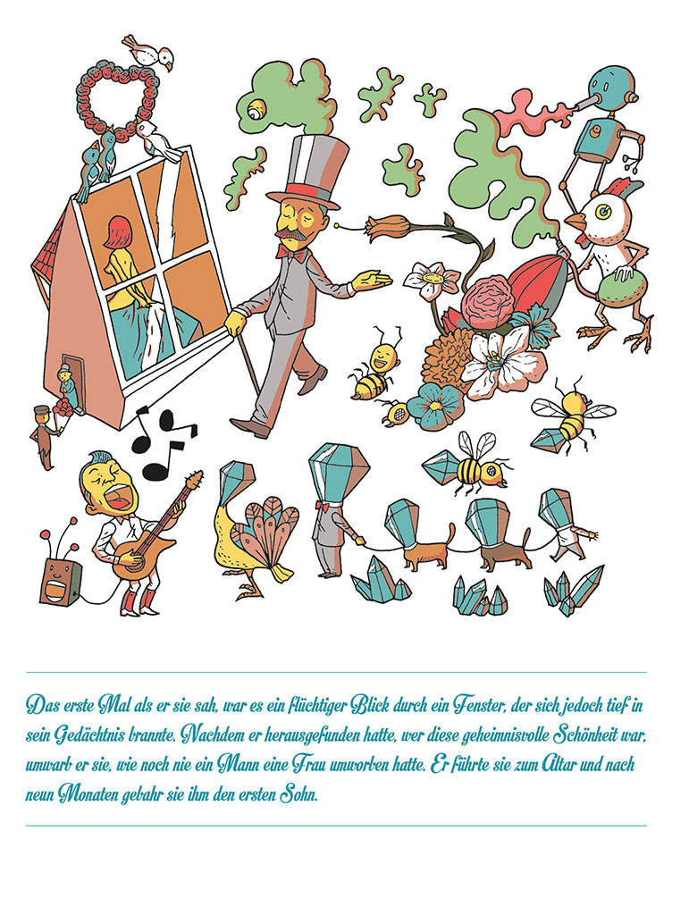 Zu sehen sind drei freie Aquarelle, die nicht ganz alltägliche Situationen illustrieren.